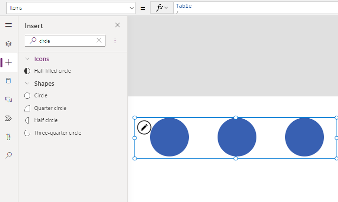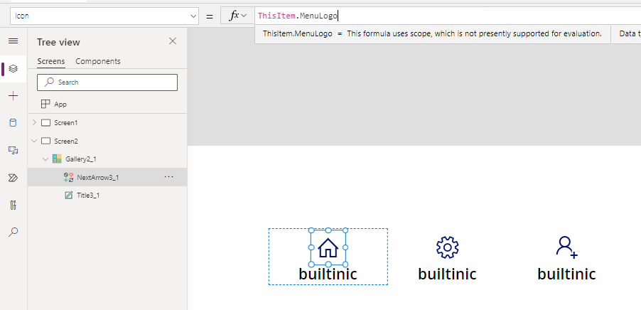 We are now ready to change the title and icon of our menu! We will do this by referencing the table we created earlier within the Items property of our gallery.